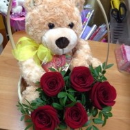 Букет роз, дополненный уютной мягкой игрушкой, станет прекрасным подарком на День влюбленных или 8 марта. Маленькую девочку можно порадовать таким презентом в день рождения.